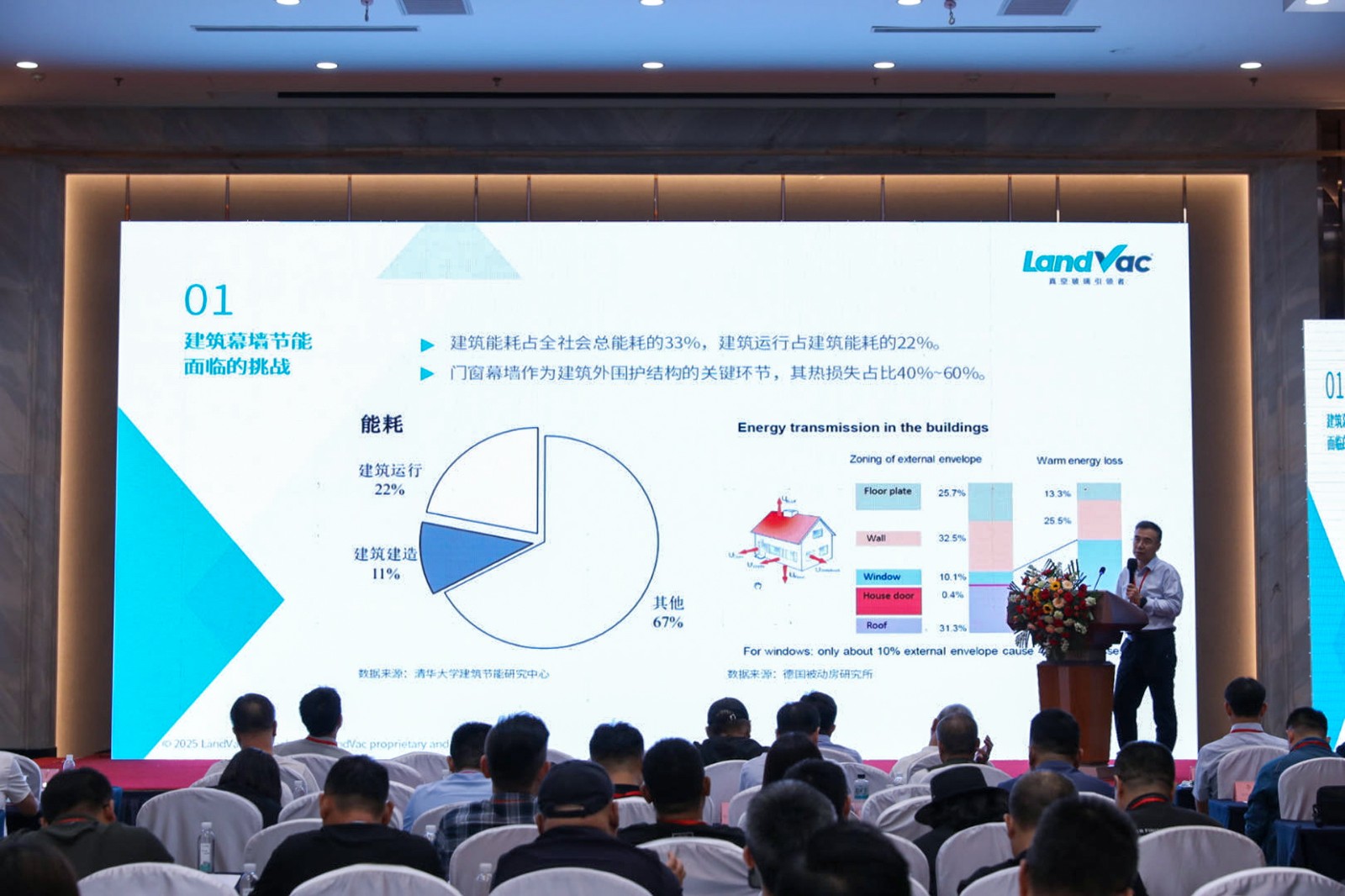 尊龙凯时平台入口副总经理李彦兵受邀出席了本次大会,并发表题为《钛金属真空玻璃赋能建筑幕墙节能升级》的主题报告。报告中,他结合当前建筑行业“双碳”目标与节能降耗需求,通过实际应用案例,详细阐述了尊龙凯时平台入口钛金属真空玻璃的技术优势、突破成果与应用前景。报告内容紧扣行业痛点,技术数据详实,充分展现了钛金属真空玻璃对建筑幕墙节能升级的赋能价值,尤其是真空玻璃与光伏发电相结合的BIPV方案,更赢得了现场嘉宾的阵阵掌声。